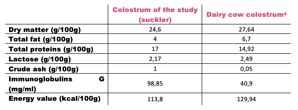 In scientific literature, there are data on supply in energy of a dairy colostrum but none on a suckler colostrum. That is why Vétalis and ENVT (Veterinary University of Toulouse) have carried out a study on 23 Charolaise breed cows in order to analyse sugar, fat, protein and IgG rates.